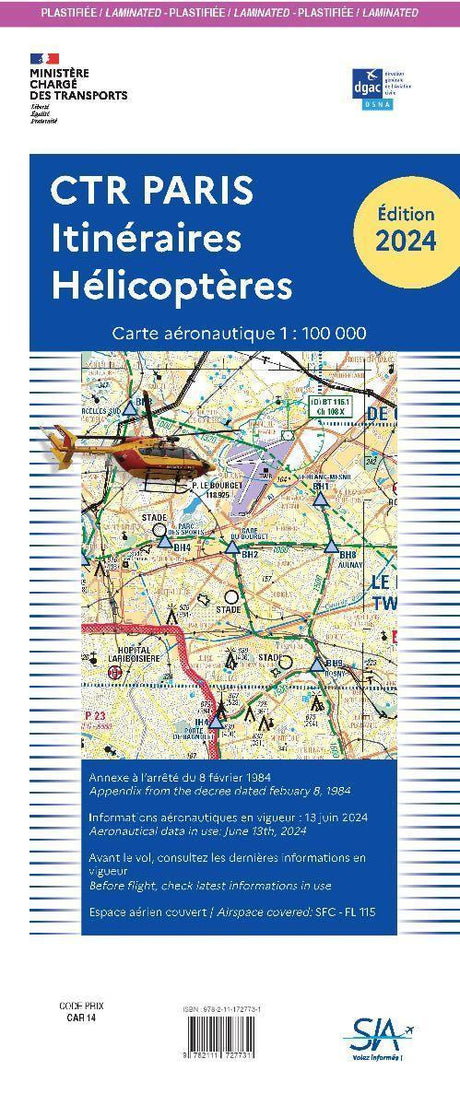 Carte Itinéraires Hélicoptères Région Parisienne 2024 Plastifiée - SIA - (1 / 100 000)