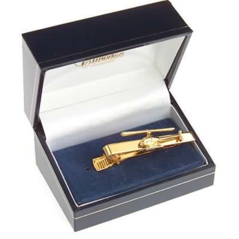 Pince à cravate dorée représentant l'hélicoptère Robinson R22