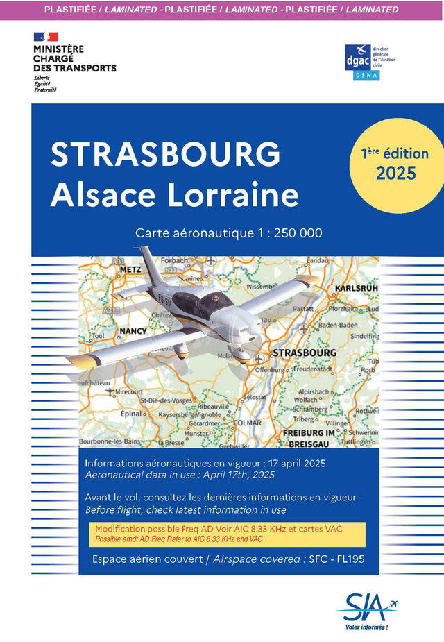 Carte Plastifiée Strasbourg Alsace Lorraine 2025 1e Edition- SIA - (1/250 000)
