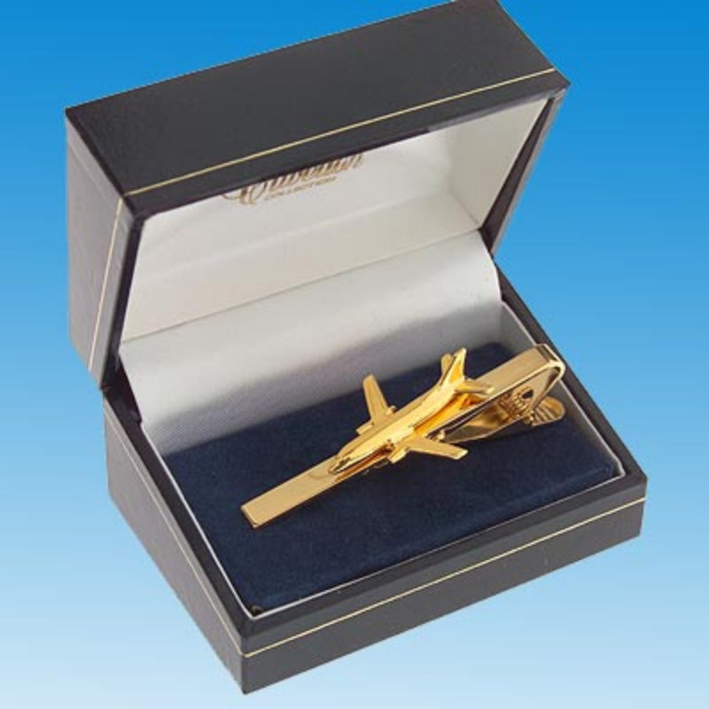 Pince à cravate dorée représentant l'aviion Boeing 737-400
