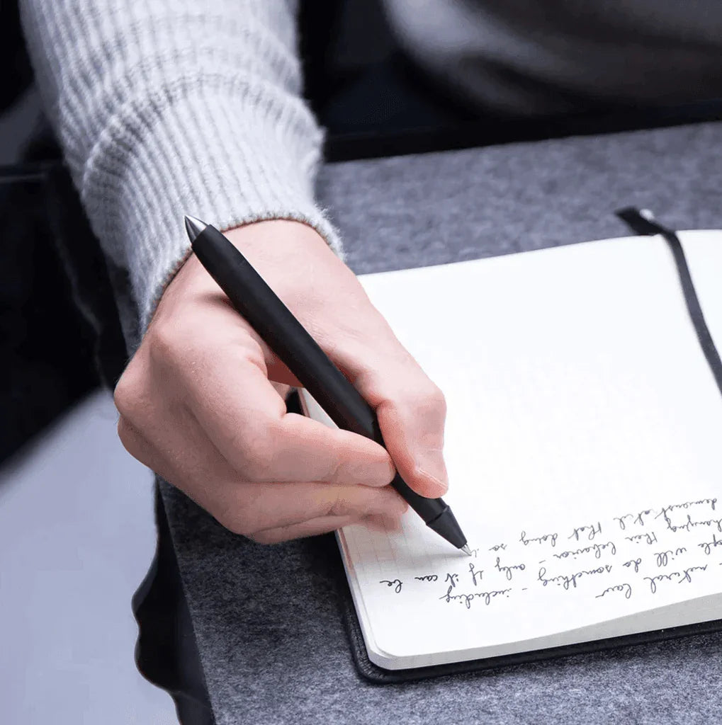 Fabriqué en aluminium de qualité aéronautique, l‘Hoverpen lévite sans électricité à un angle de 23,5 degrés, facilitant ainsi sa prise en main pour écrire vos idées.