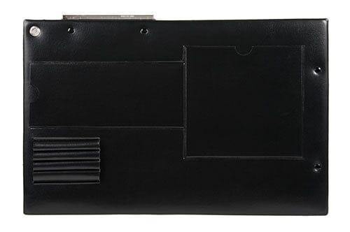 Le revers comprend des boucles et des poches pour contenir jusqu'à 4 crayons ou stylos et un rapporteur et un traceur. Comprend un solide clip à ressort en métal situé au centre, un œillet de suspension et des poignées de coin, un œillet renforcé pour retenir le support du chronomètre et un couvercle de protection rabattable en plastique transparent sur le devant.
