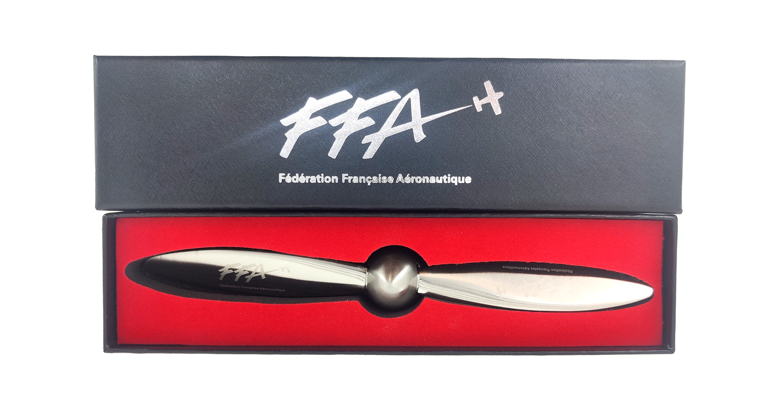 Ouvre Lettres Hélice rotative avec le logo de la FFA (Fédération Française Aéronautique).