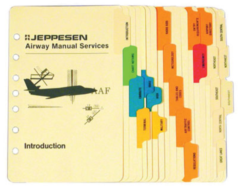 Intercalaires pour cartes et textes permettant d'organiser votre classeur Jeppesen.
