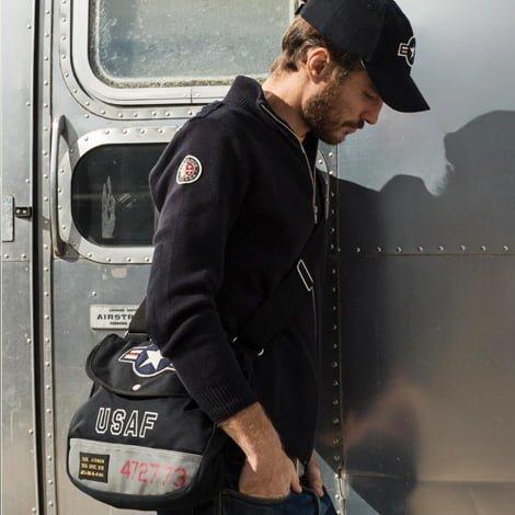 Le sac à bandoulière de l'USAF présente des emblèmes historiques de l'USAF que l'on voit sur les avions militaires depuis les années 1940. Fabriqué avec un sergé de coton bleu marine, une fermeture à bouton-pression et une bandoulière réglable.